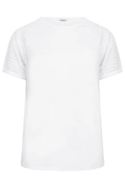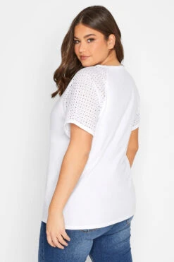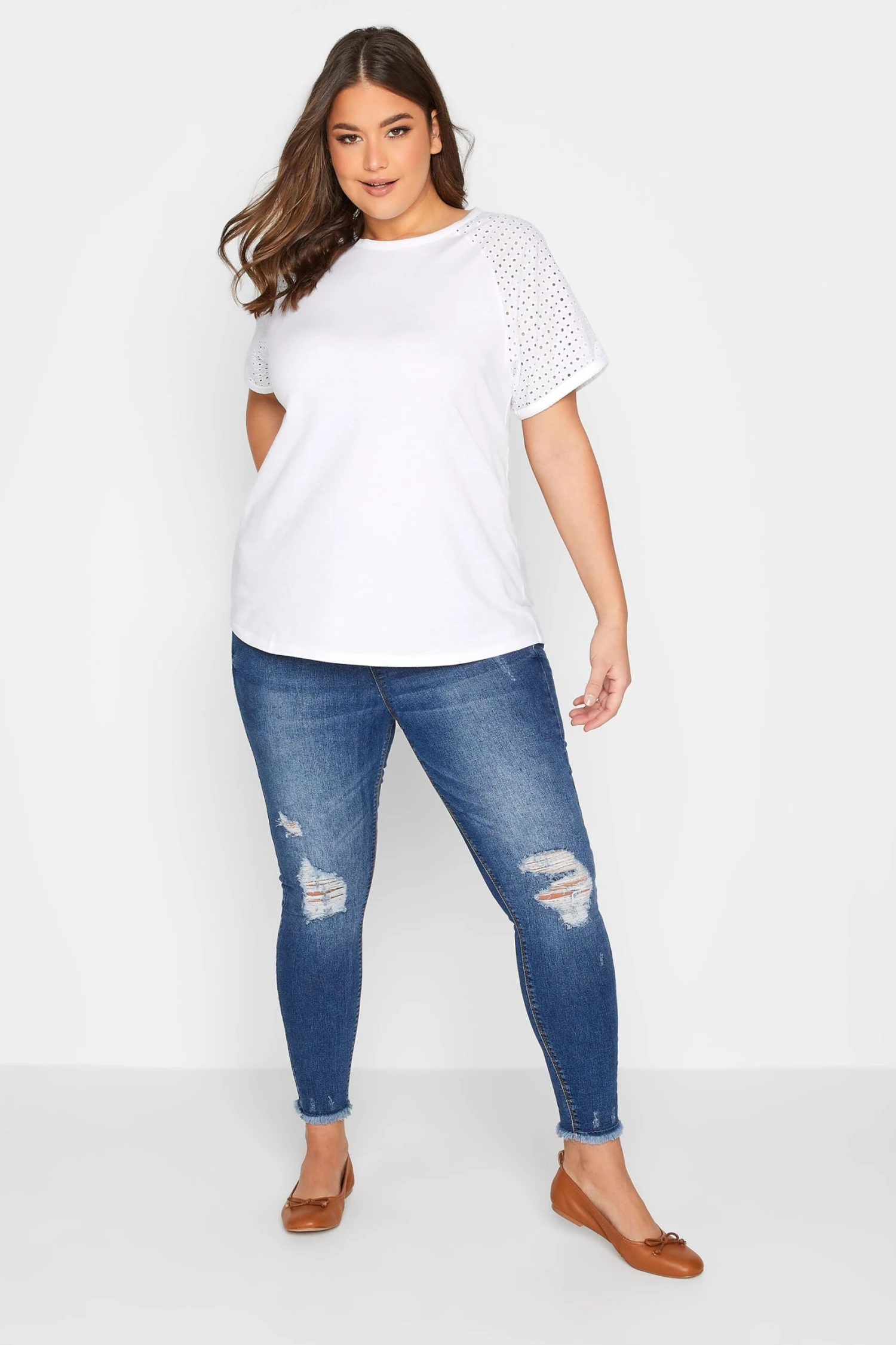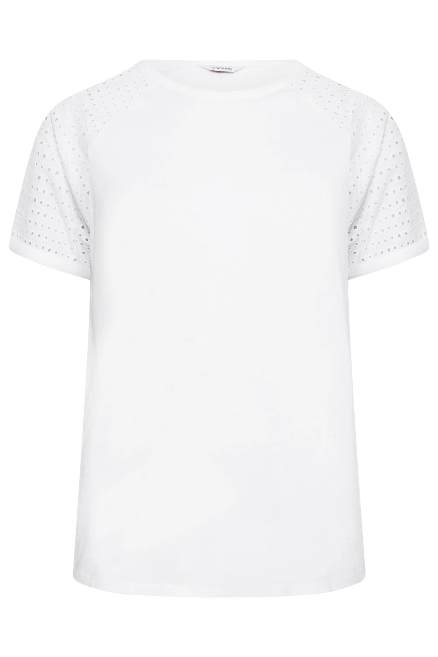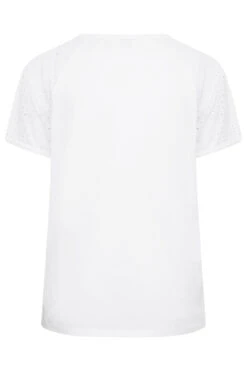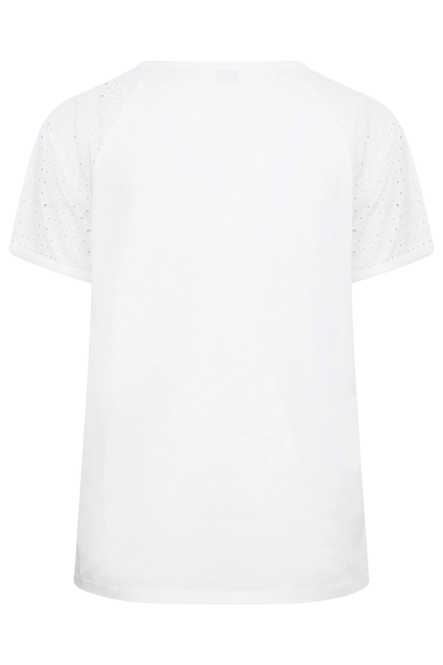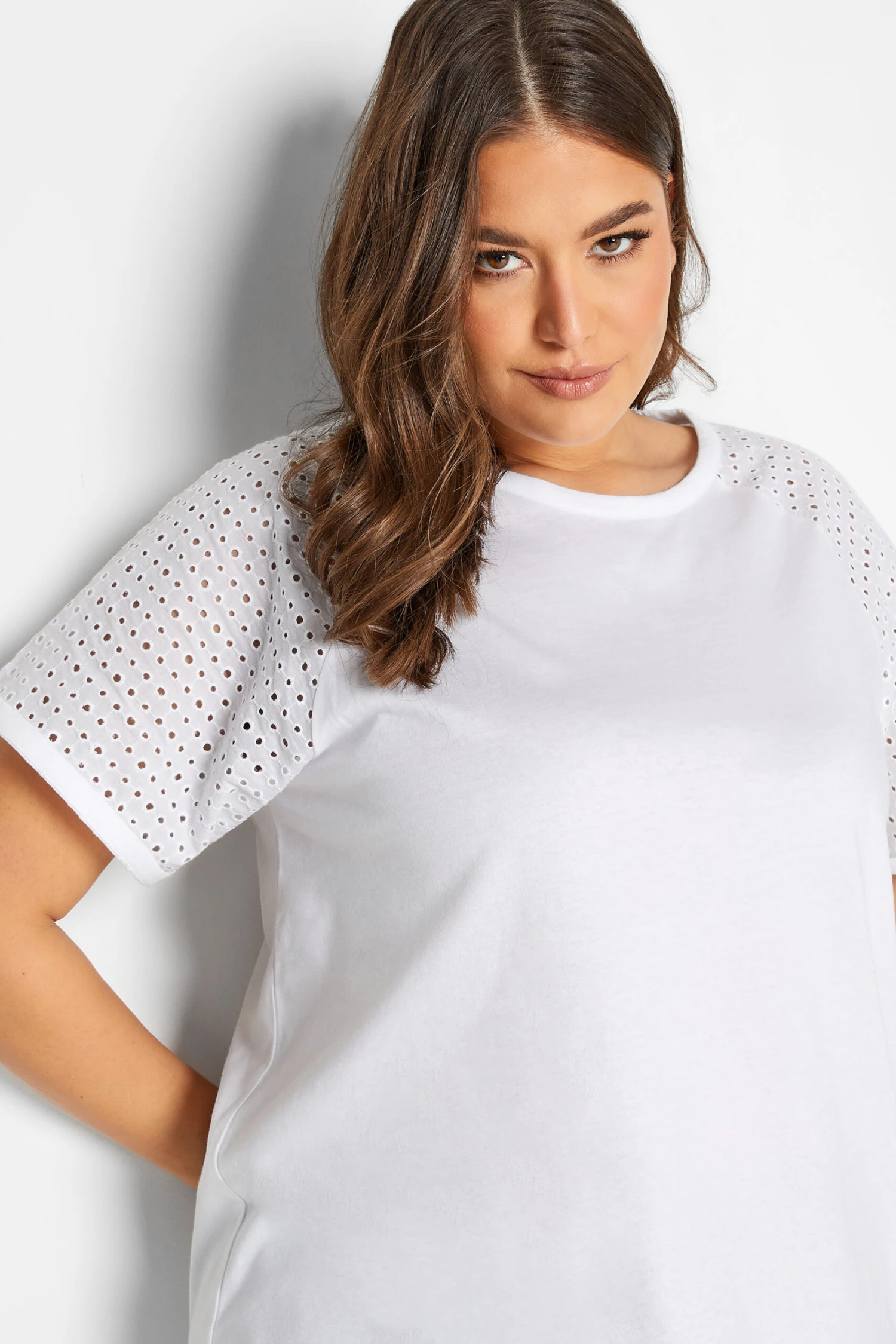YOURS Curve White Broderie Anglaise Raglan T-Shirt