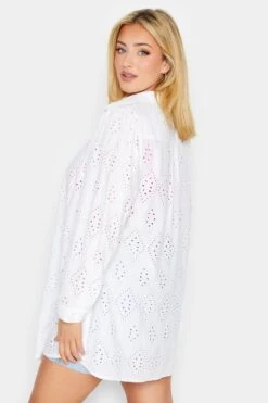 Need a holiday? So does this new-in plus size broderie shirt. Made from a comfortable woven fabric, it features long sleeves, a classic collar and button-through fastenings in a broderie anglaise design. Style over a cami top with shorts to complete the look.