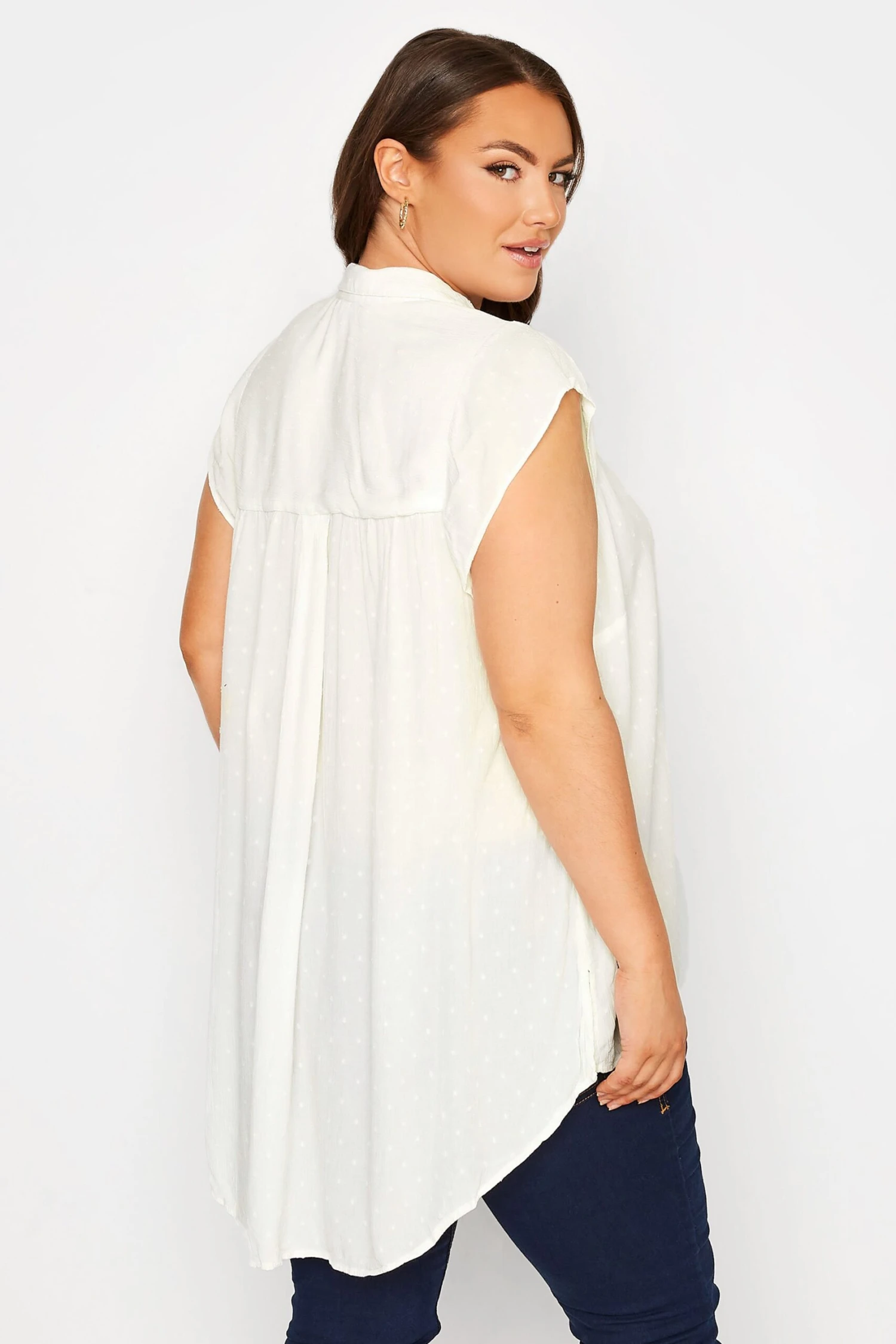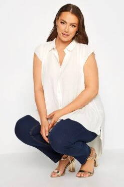A versatile piece your wardrobe can’t live without! This plus size shirt features a dipped hem and short cap sleeves with a classic collar and button through fastenings. Wear with trousers and loafers for everyday wear, or opt for heels in the evening.