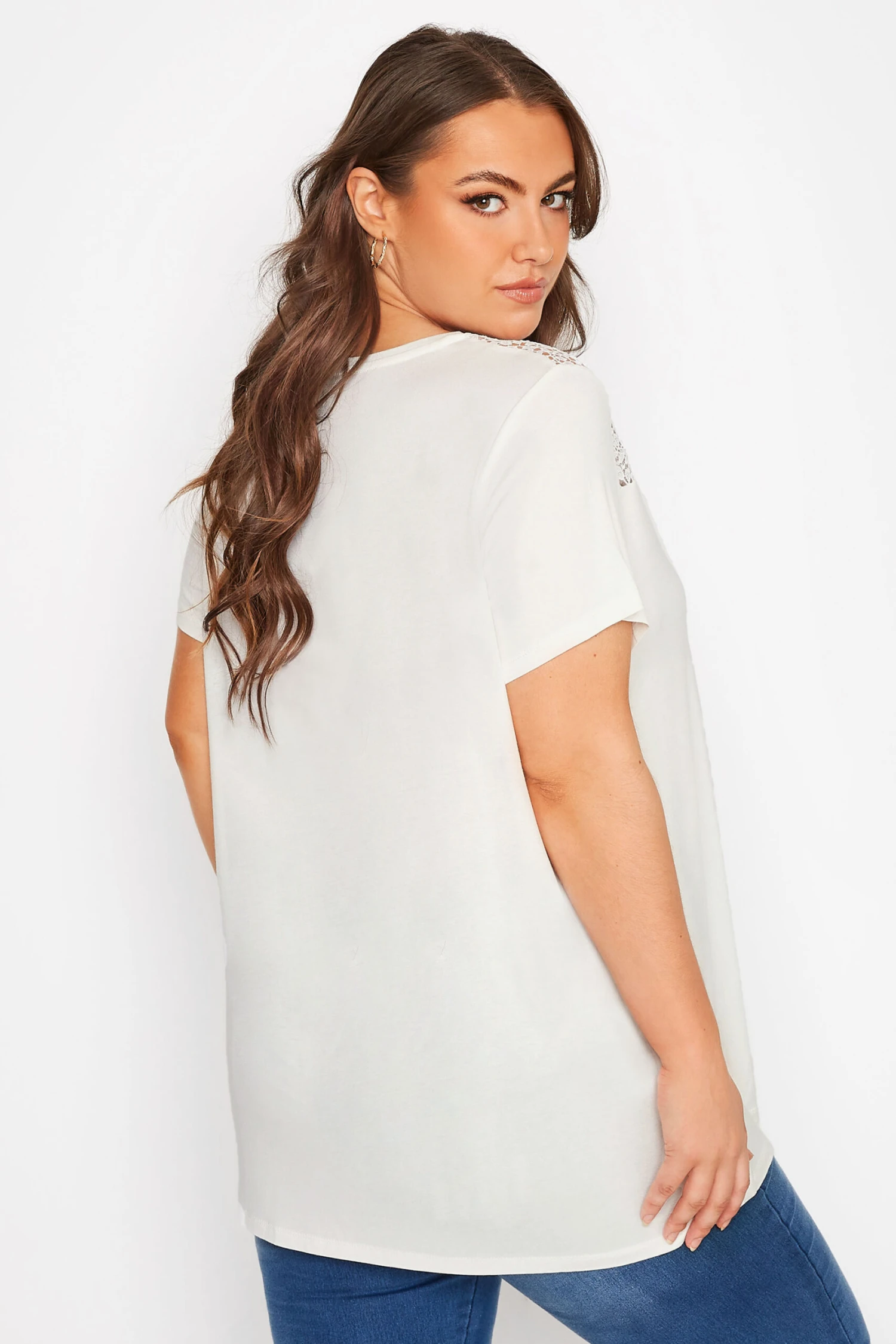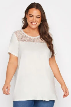 Introduce this must-have t-shirt into your casual collection this season. Made from a comfortable jersey fabric, it features a crochet neck with short sleeves and a scoop neckline. Just add your favourite denim and trainers for everyday appeal.