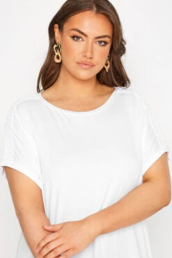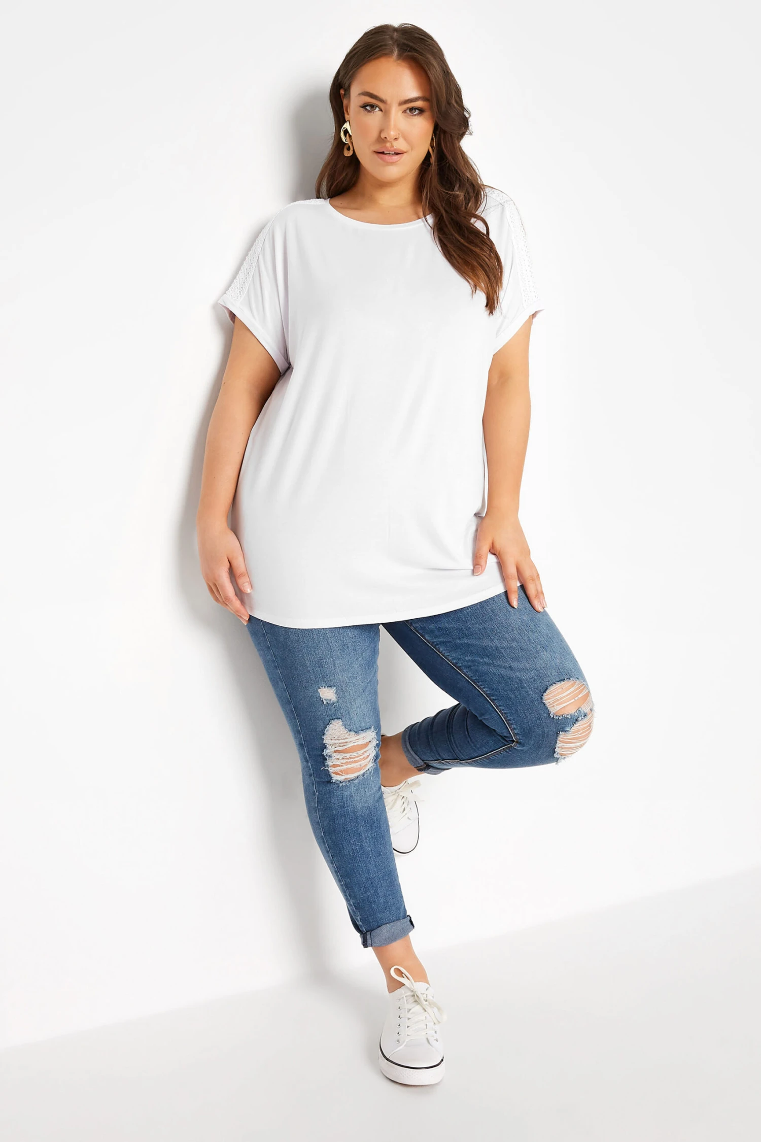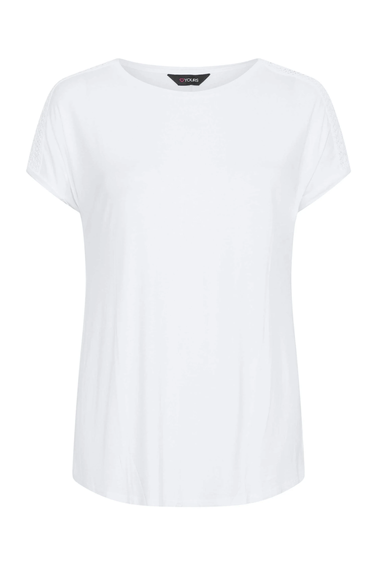 Refresh your basics with this crochet shoulder T-shirt. Made from a stretch jersey fabric, it features short sleeves, a scoop neckline with a dipped hem. Pair with jeans and trainers for a casual everyday outfit.
