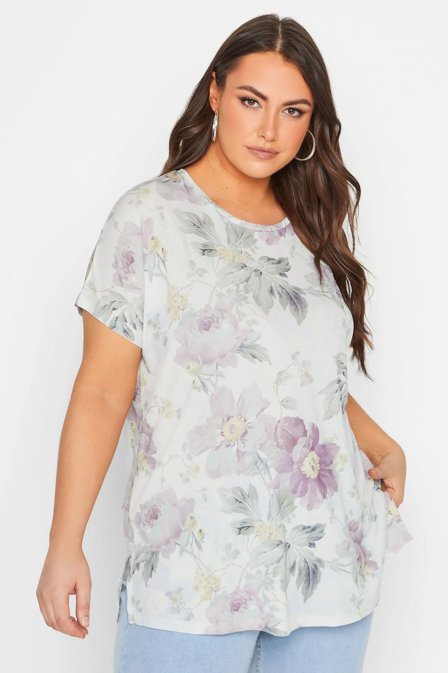 Get ready for summer with this new-in printed t-shirt. Made from a comfortable jersey fabric, this tee features a scoop neckline, short sleeves, and a floral print. Style with shorts and trainers for an unforgettable summer look.