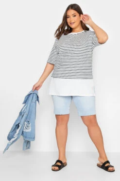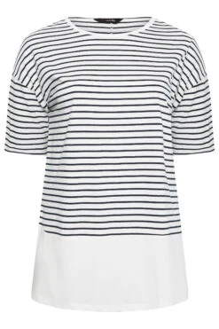Summer stripes! This new-in t-shirt is a must-have for your casual collection. Made from 100% cotton, it features a scoop neckline, short drop sleeves, and side split hem in a stripe print design. Simply style with denim shorts and trainers for a look you can rely on.