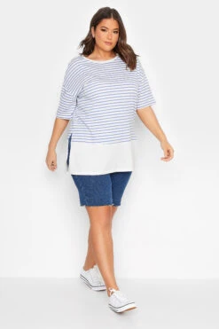 Summer stripes! This new-in t-shirt is a must-have for your casual collection. Made from 100% cotton, it features a scoop neckline, short drop sleeves, and side split hem in a stripe print design. Simply style with denim shorts and trainers for a look you can rely on.