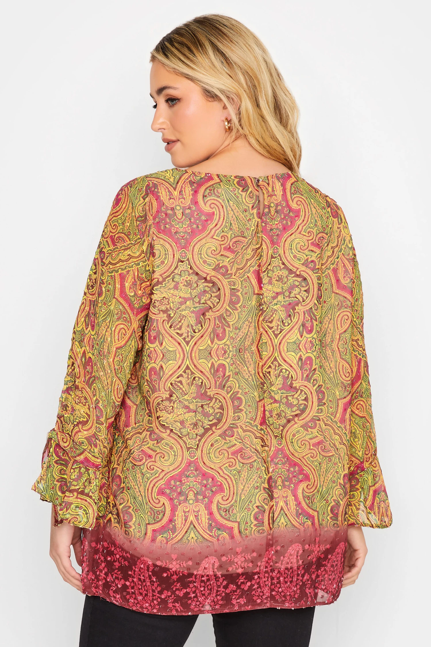 Make some room in your wardrobe for this new-in top! Made from a comfortable woven fabric, this top features long bell sleeves, a paisley print, and a scoop neckline. Style with jeans and trainers for a stylish everyday look.