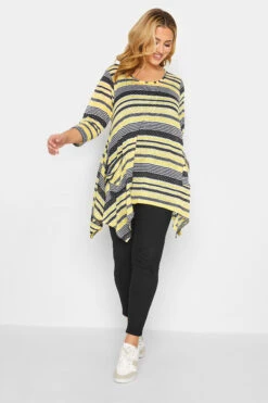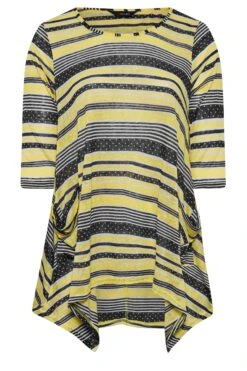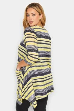 Refresh your wardrobe with this plus size knitted top. Made from a comfortable jersey fabric, it features 3/4 length sleeves, a scoop neckline and two side pockets with a hanky hemline. Layer over a cami top with jeans and trainers for a casual, everyday outfit.