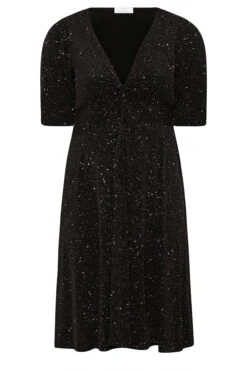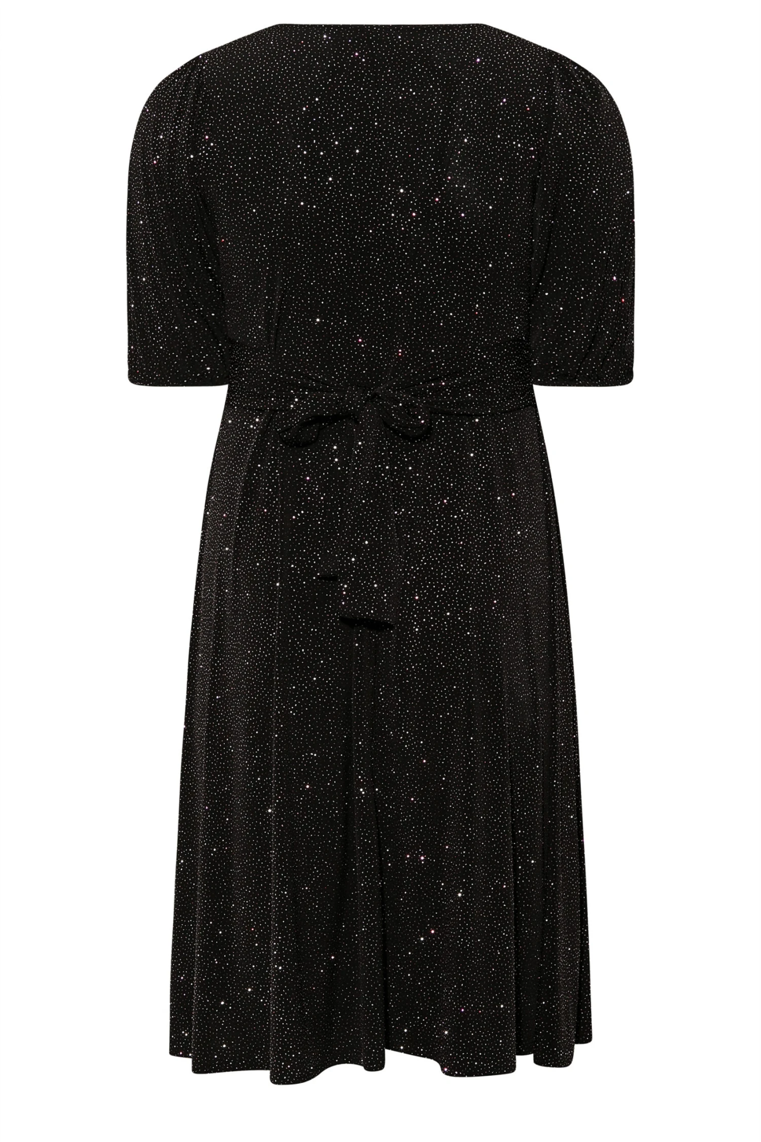 Dance the night away in this glittery party dress from Yours London. Made from a comfortable jersey fabric, it features a v-neckline, short puff sleeves, and an adjustable tie waist, complete at a midi length. Style with heels and a clutch bag to look and feel your best.