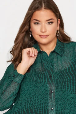 Spice up your wardrobe with this Yours London snake print shirt. This shirt is made from a soft woven mesh fabric and features a button front, long sleeves, and a classic collar—style with black leather trousers and heels for the perfect night out look!