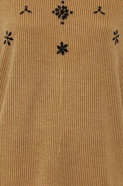 Add a touch of luxury into your casual collection with this new-in ribbed top. Made from a soft jersey fabric, it features floral embellishment with long sleeves and a scoop neckline. Complete the look with jeans and boots for easy, everyday style.