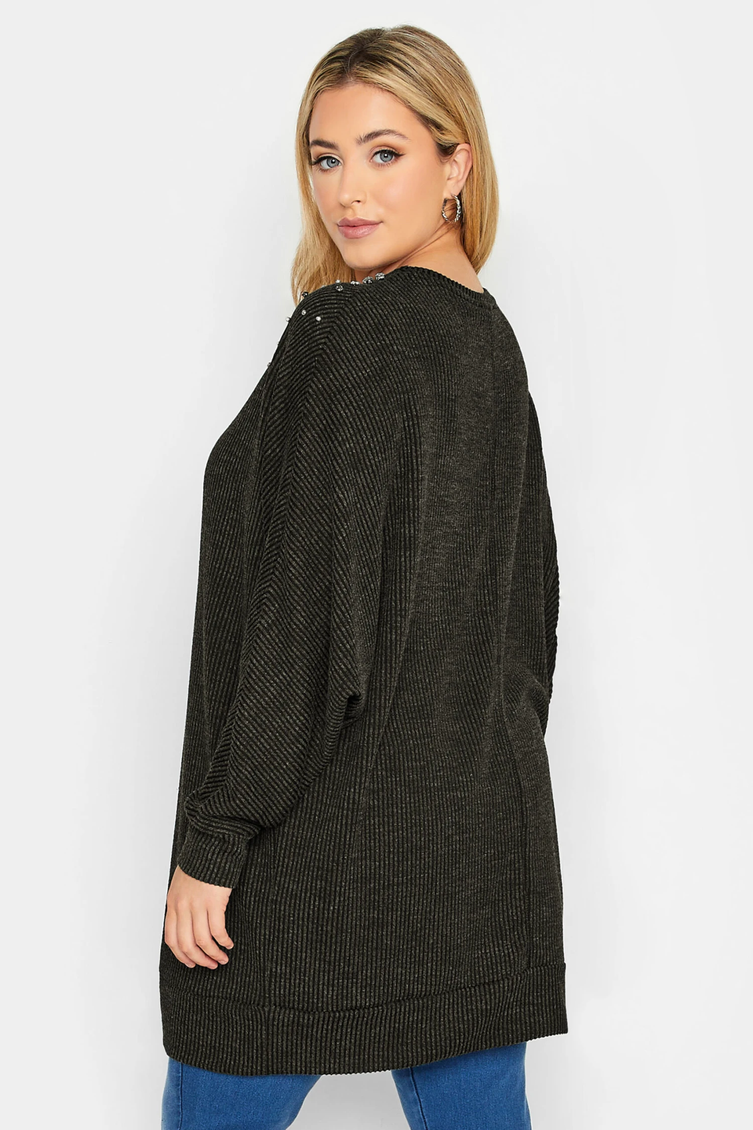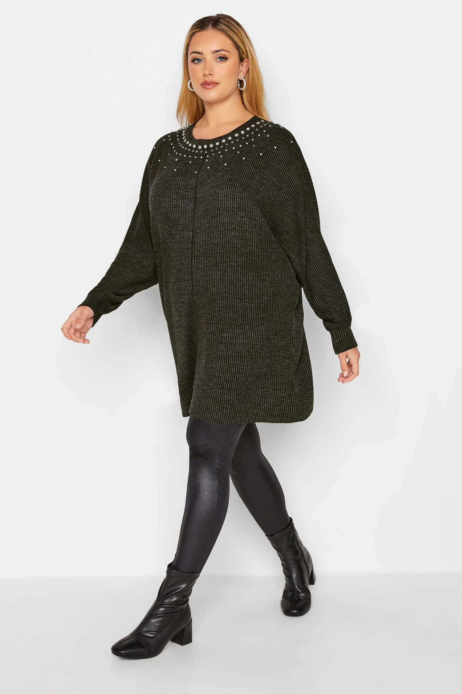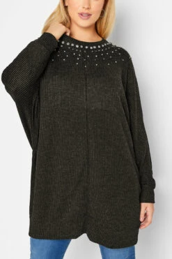 Elevate your new season wardrobe with this must-have jumper from Yours Luxury. Made from a soft knitted fabric, it features sequin embellishment with long sleeves and a crew neckline. Finishing with a dipped hemline, simply team with jeans and boots for an eye-catching look.