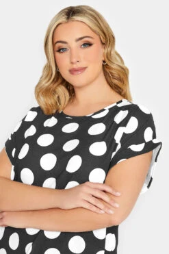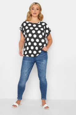 Refresh your workwear with this polka dot top. Made from a comfortable woven fabric, it features a scoop neckline and short sleeves in a polka dot print. Simply style with slim-leg trousers and trainers for a smart casual look.
