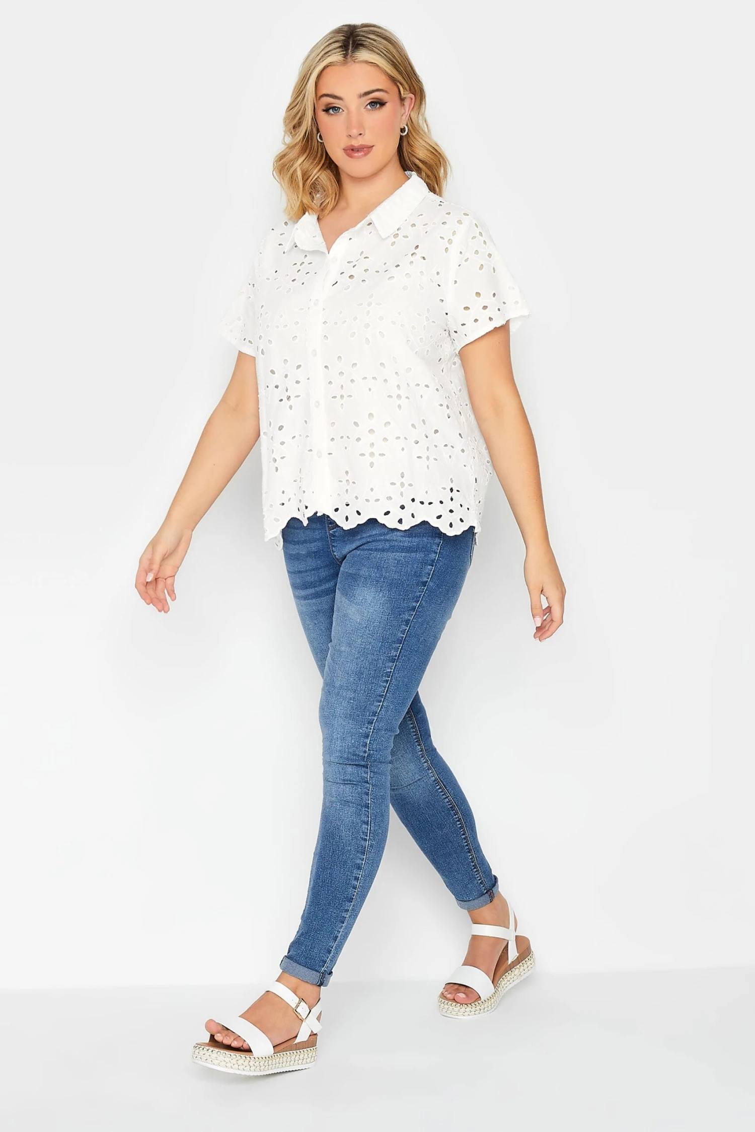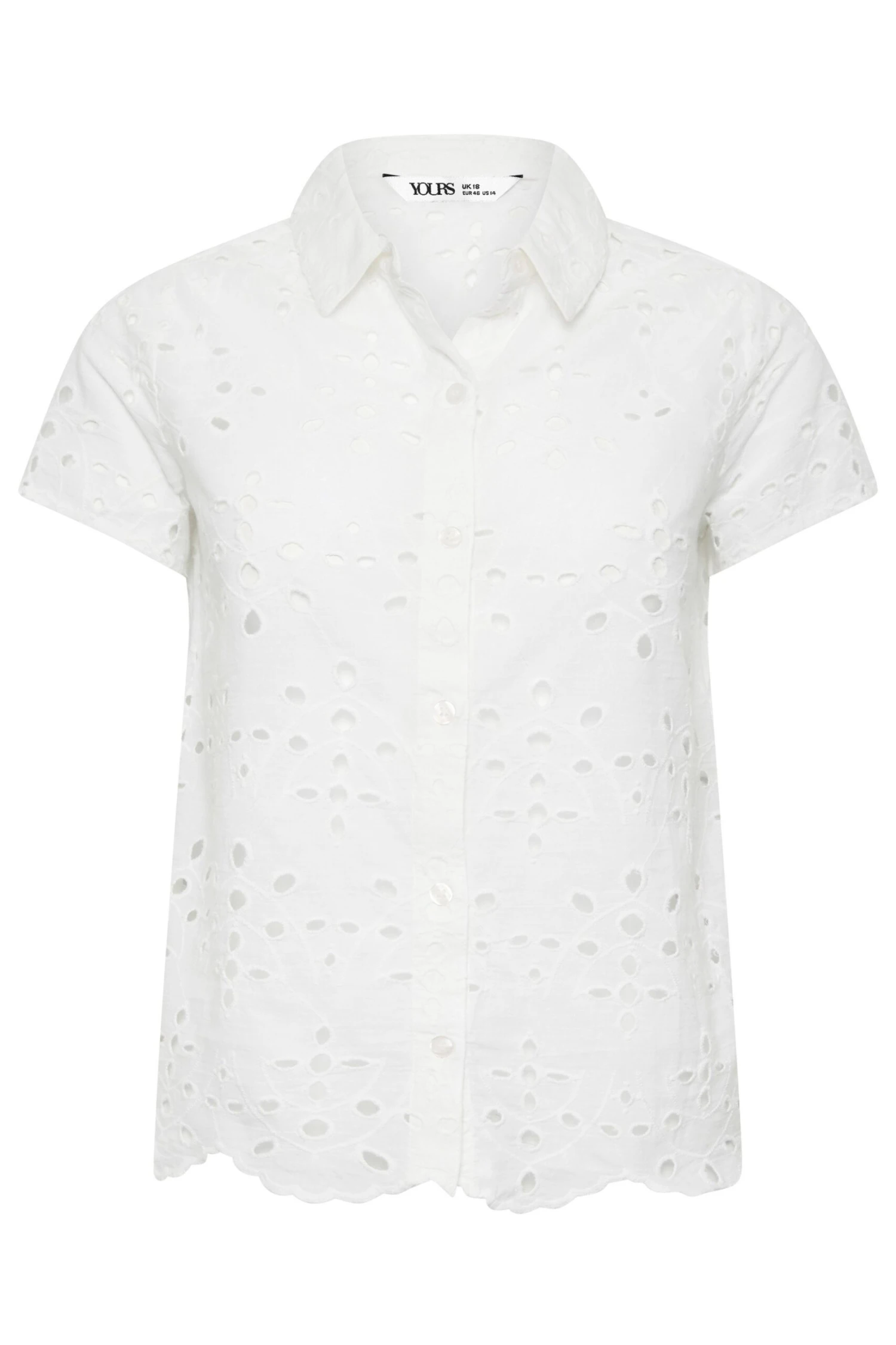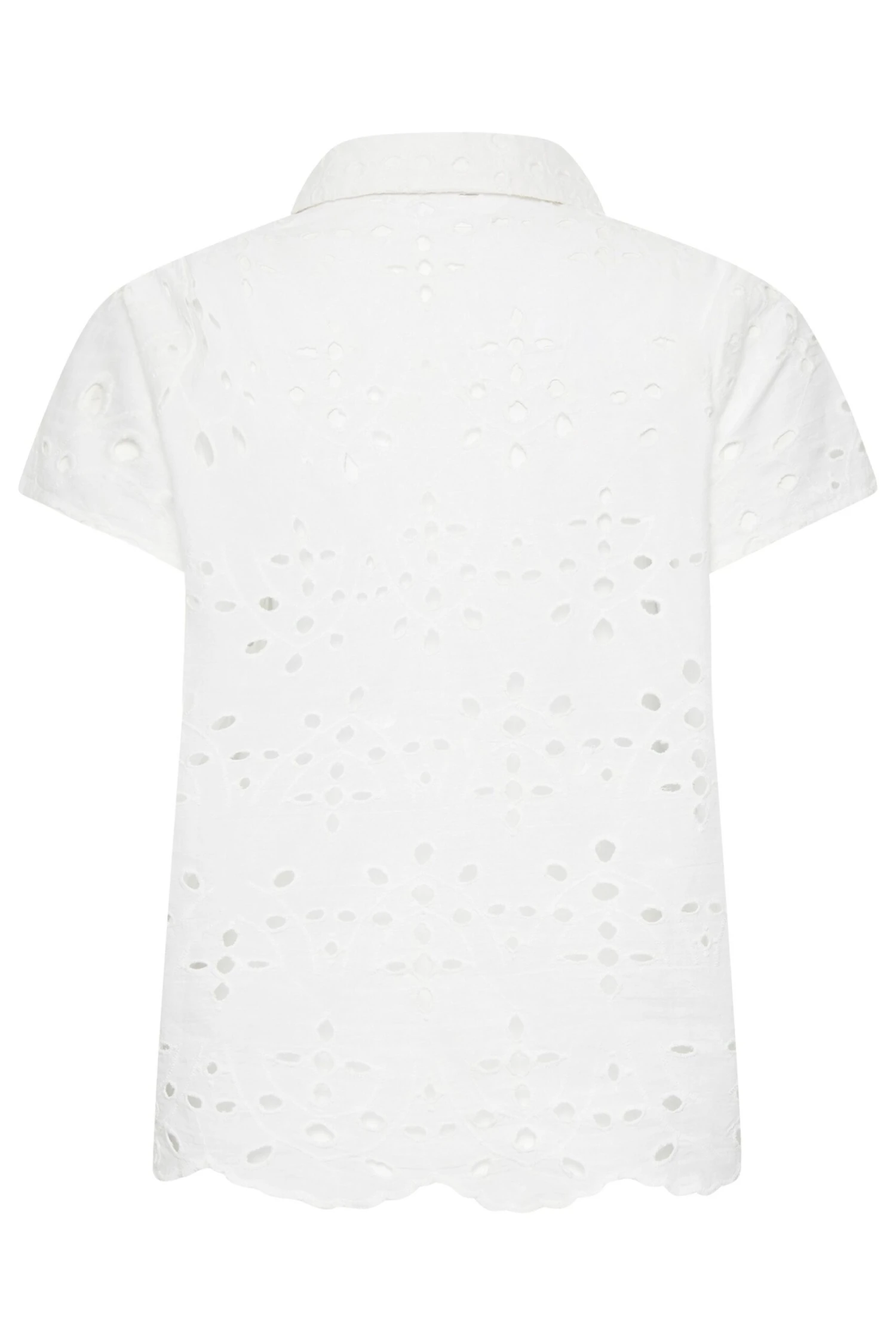 This trendy broderie shirt is perfect for the upcoming season. Made from 100% cotton, it features button fastenings, a classic collar and short sleeves with an all-over broderie anglaise pattern. Pair with your favourite jeans and sandals for a timeless summer outfit.